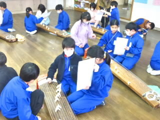 2025年1月17日(金) 4年生 音楽の授業で箏の学習「さくら さくら」