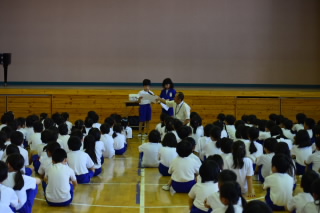 2019年8月26日(月) 2学期始業式84日間の2学期がスタートし、始業式が行われました。 児童代表の2人が発表してくれました。 また校長先生からは、2学期のスタートにあたり、絵本『教室はまちがうところだ』をもとに、 今年の東小の合言葉『やさしく話し、あたたかく聴く』についてのお話がありました。
