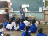 朝活動の時間に、読み聞かせボランティア「うさぎのしっぽ」の皆さんに絵本や紙芝居等の読み聞かせをしてもらいました。机を後ろに寄せて、読み手のボランティアの方を囲むように座りました。子どもたちの視線は、絵本や読み手の方に釘付け状態。朝の時間をすてきなひとときからスタートしました。