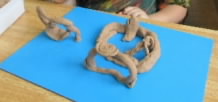 1年生が小学校で初めての粘土をやりました。粘土をひもにして作品を作りました。どの子もすてきな作品ができました。
