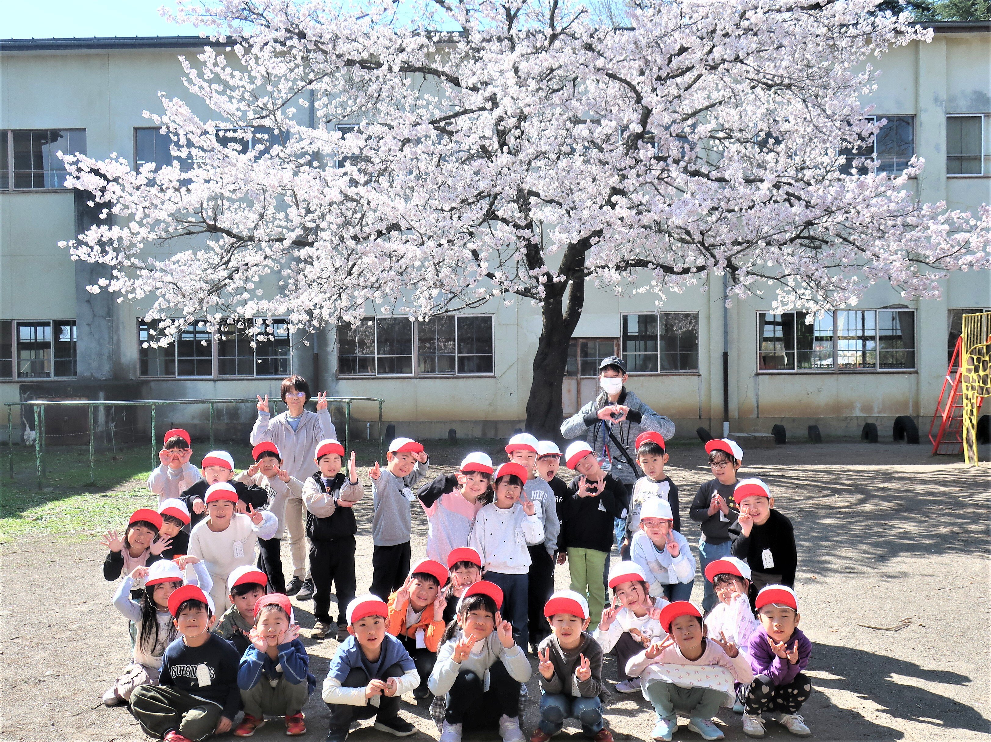 せっかくなので、桜をバックに、全員で記念写真を撮りました。
