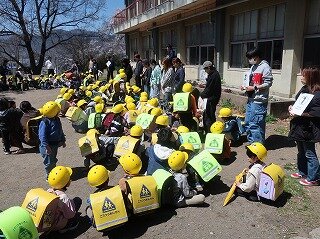 帰りの支度ができたところで中庭に整列し、地区ごとに一緒に帰りますが、交通事故には十分注意して下校してくださいね。