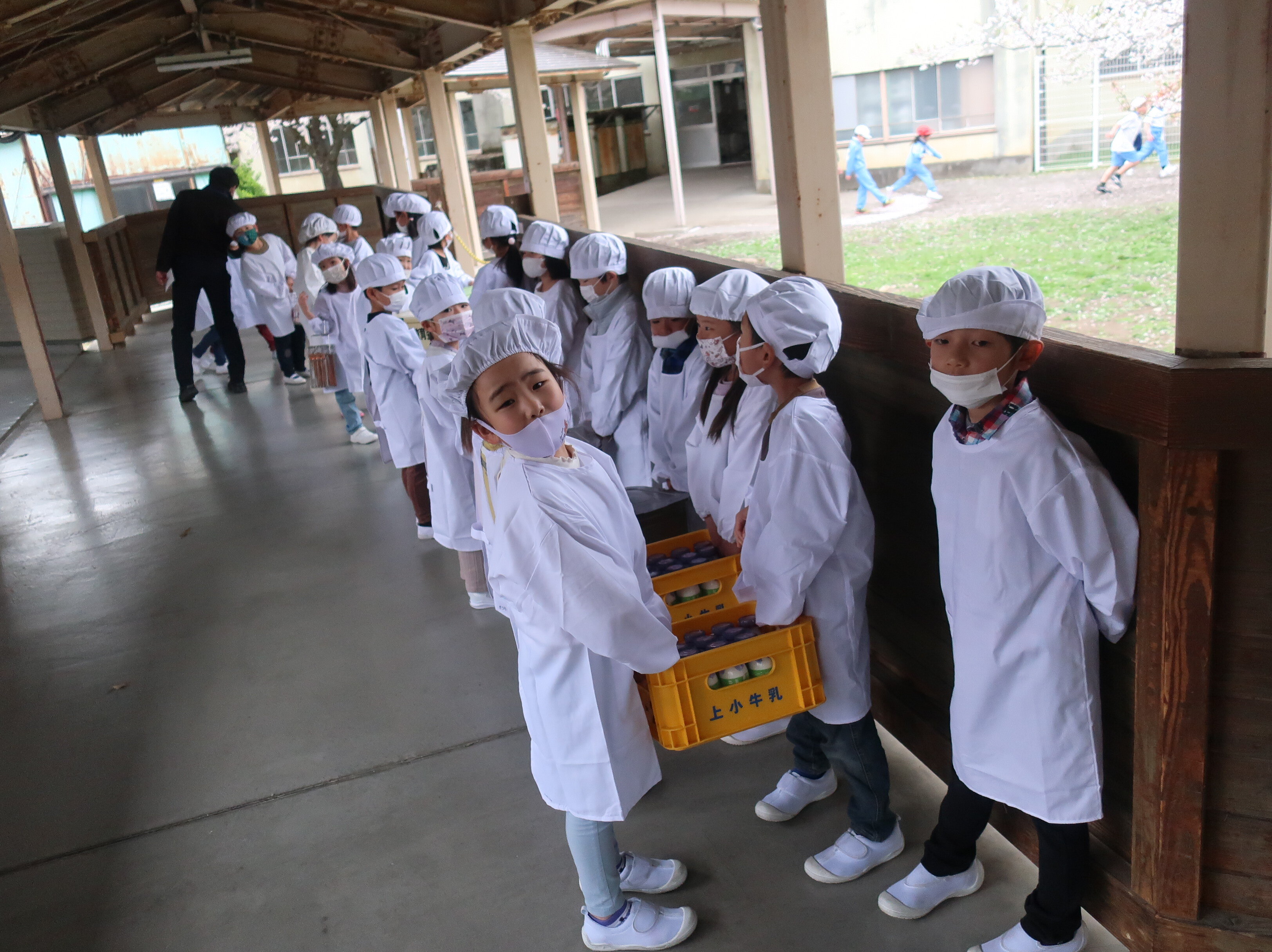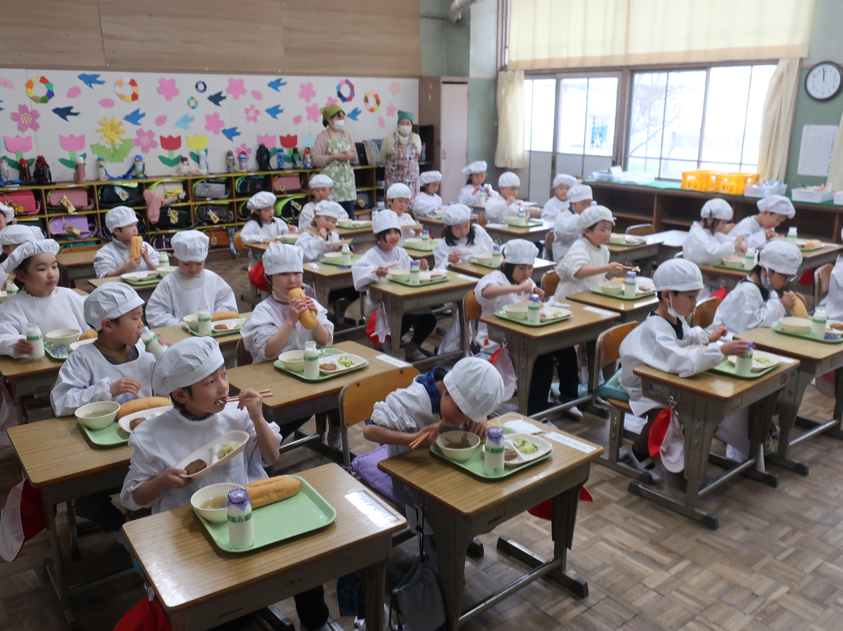 入学式から数えて5日目、ついに1年生の給食が始まりました。