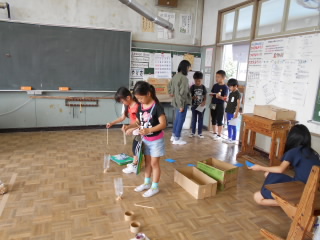 2019年10月 3日(木) 6年2組 「ふれあいショップ」6年2組の総合的な学習の時間の活動として,「6の2ふれあいショップ」を開きました。 射的・輪投げ,チャレンジ,ボウリング,お化け屋敷などのゲームコーナーや食べ物, 小物などのお持ち帰りコーナーを準備し,全校のみなさんに楽しんでもらうことができました。
