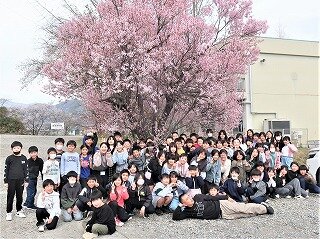 4年生の皆さんが、昇降口から外に出ていたので声を掛けると、みんなで記念撮影をするとのことでした。