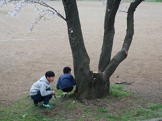 朝の活動の時間、校庭を駆け回っているお友だちがいます。