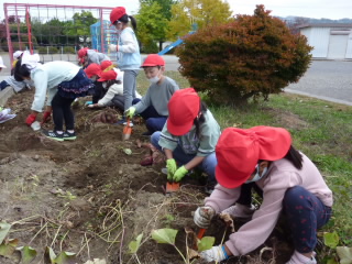 2日には、さつまいもほりをしました。各クラス、一輪車2杯分のおいもが収穫できました。大きなおいもが出てくるたびに、歓声があがっていました。