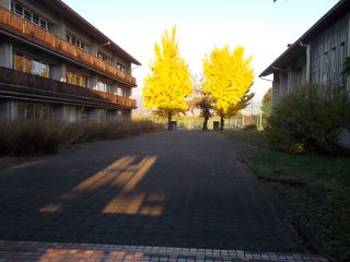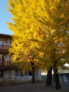 中庭の大銀杏も、夕日に照らされ素敵に輝いています。