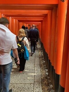 伏見稲荷の様子です。清水寺より観光客が多いです。千本鳥居は身動きできないくらいの混雑です。