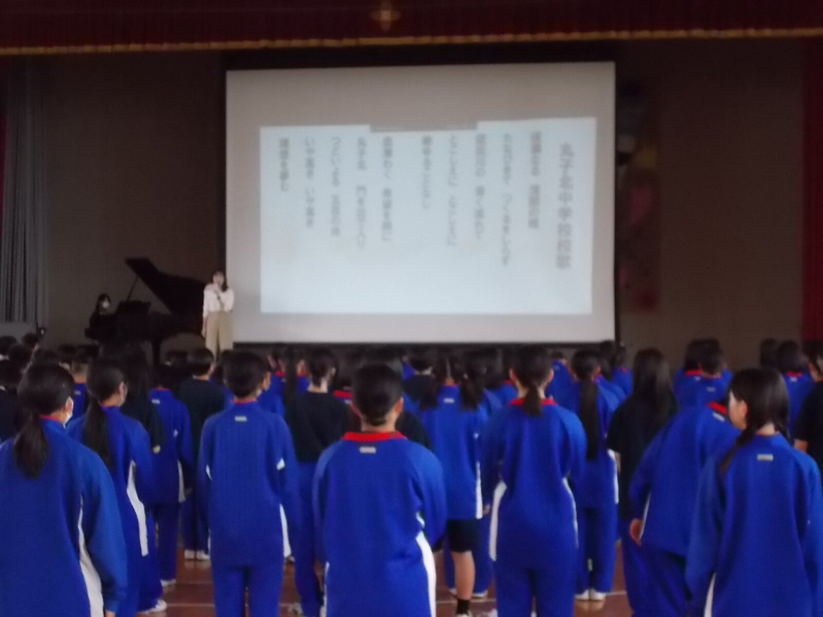 本日、全校で校歌練習・歌活動がありました。全校での練習が初めてでしたが、よく声が出ていました。丸子北中学校の良さとして、校歌や合唱も大切にしていってほしいと思います。