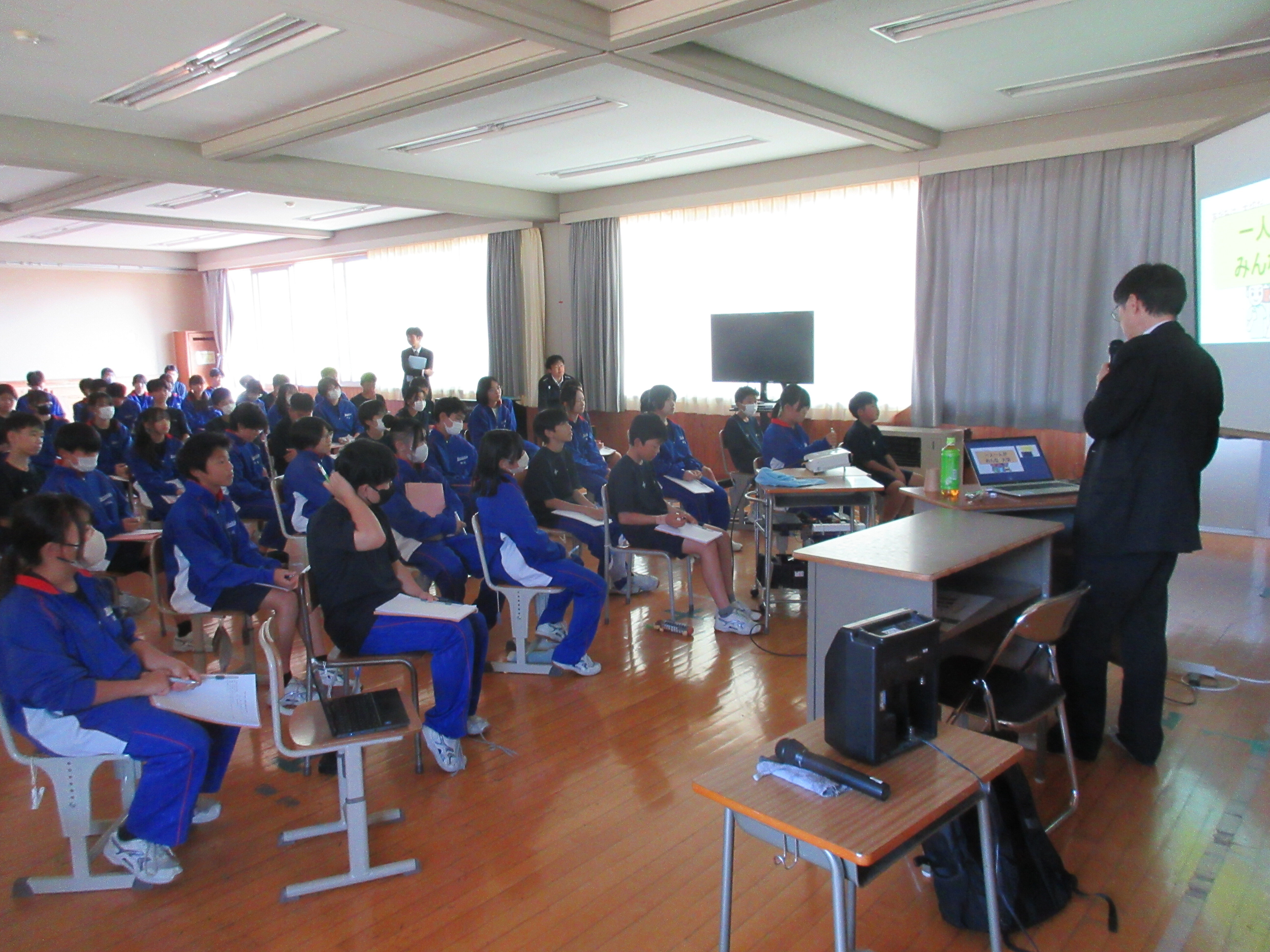 先日、後期人権月間に先立って1学年では講師の先生をお迎えして、人権講演会を行いました。真剣に講師の先生の話を聴き、考え合う姿が印象的でした。