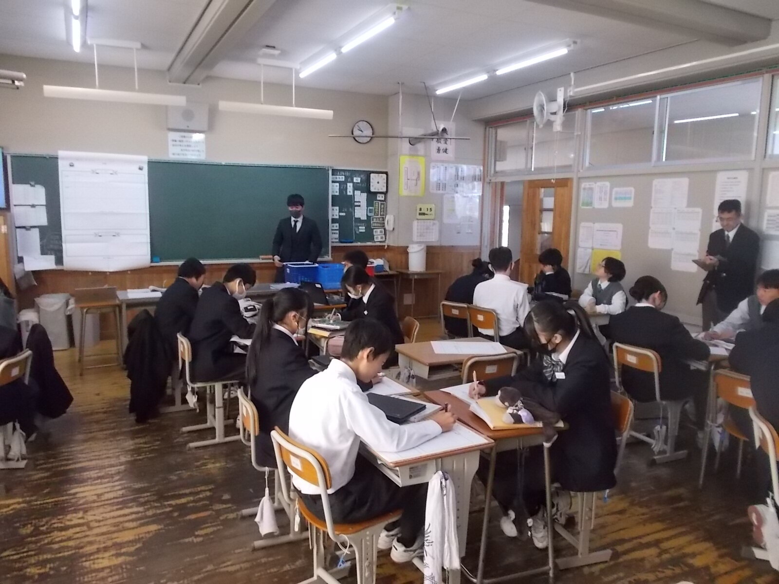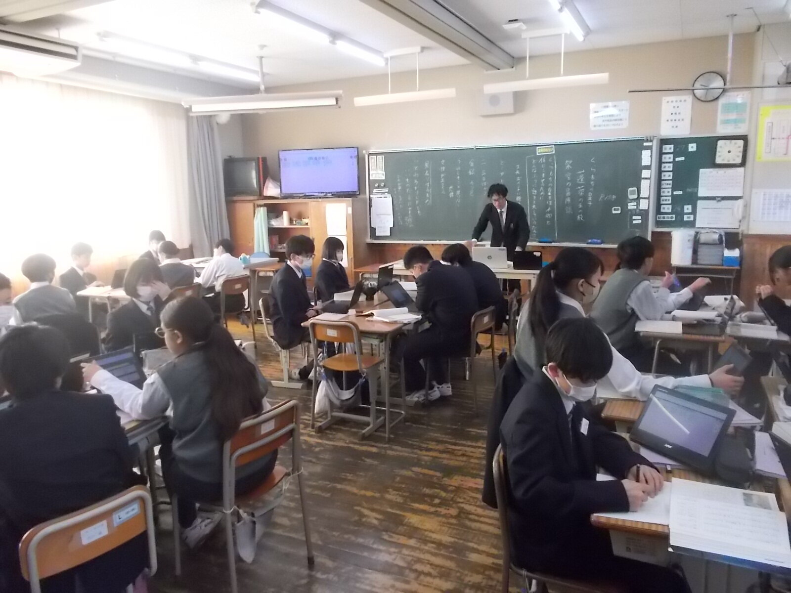 本日、国語と社会の教科で公開授業が行われました。国語では1年「蓬莱の玉の枝」の単元で古典の学習でした。社会では1年「アジア州」の単元で地理の学習でした。学習問題について友と協働しながら考え合う姿が印象的でした。