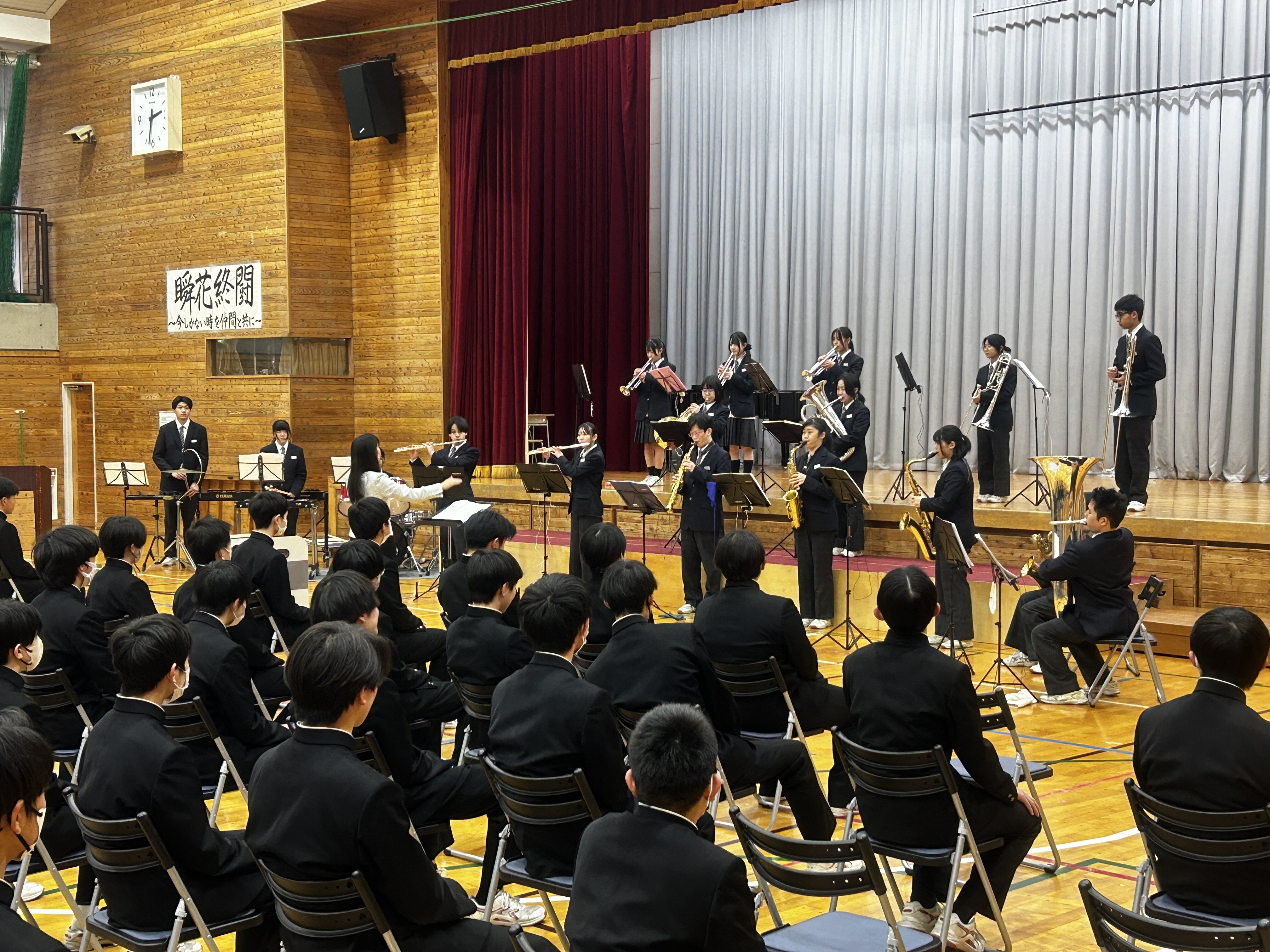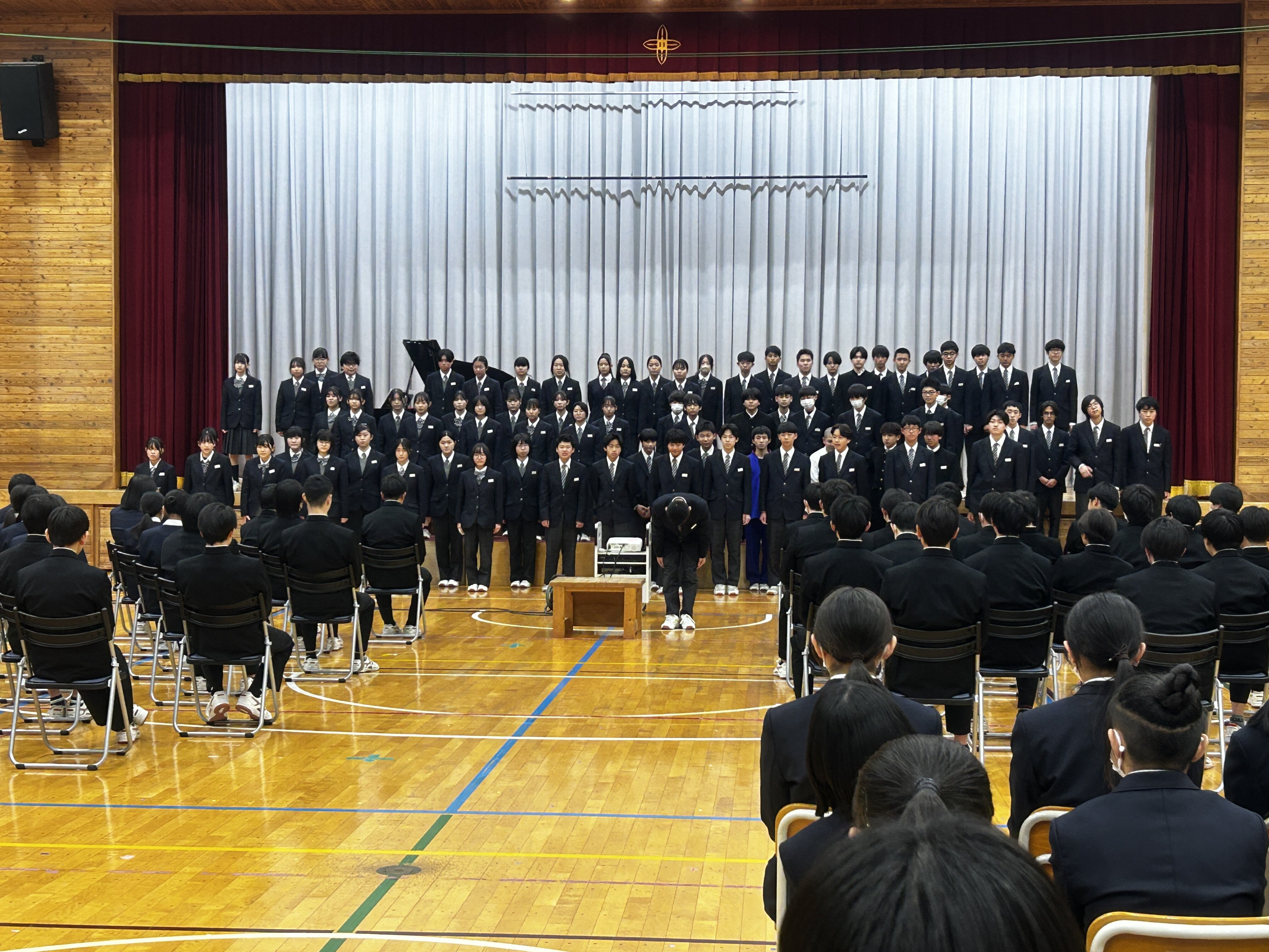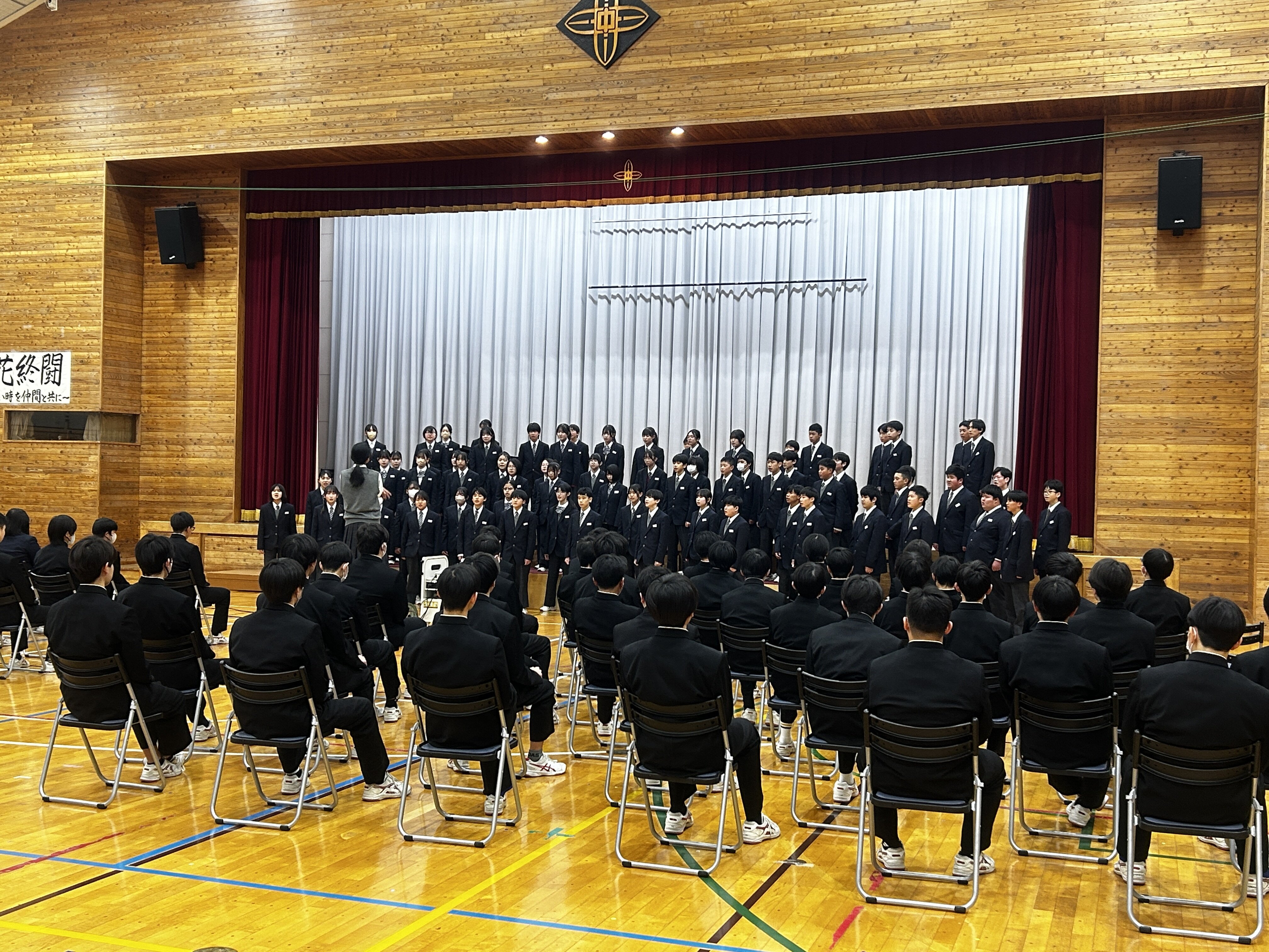 本日「3年生を送る会」がありました。温かい雰囲気の中、新生徒会の役員や1、2年生、吹奏楽部、3学年職員から工夫を凝らした出し物や感謝のメッセージ、合唱が送られました。3年生から後輩へ送られた合唱も心温まるものでした。卒業式を前に全校生徒みんなで創り上げた3年生を送る会。3年生の皆さん、本当にありがとうございました。