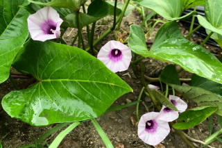 夏休み中、日中の気温が35℃以上になる猛暑日が何日もありました。強い日差しが植物を大きく育て、畑のサツマイモは地面が見えないほど葉をしげらせ、花壇のアサガオは2階までつるを伸ばしています。1年生の教室の前に咲くアサガオの花数は優に100を超え花のカーテンのようです。