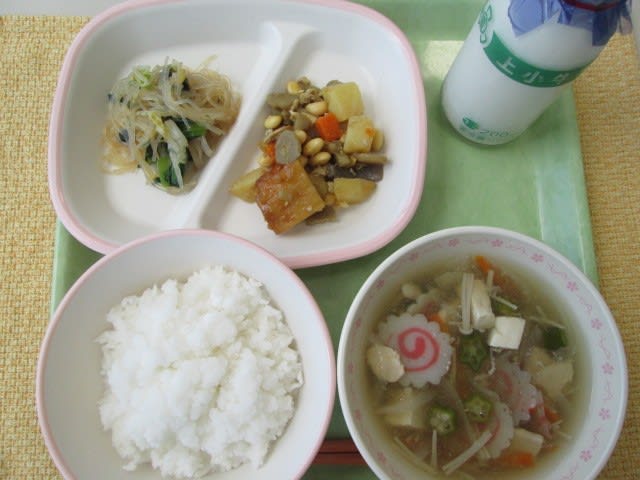今日は虫歯予防献立で、かみ応えのある食材の大豆を使用した「変わり五目豆」を提供していただきました。よくかんで食べ、虫歯予防に心がけましょう。