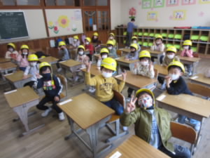 2022年4月 7日(木) いのちを守る、黄色いヘルメット上田市では、小学校に入学すると、登下校の時にかぶる「黄色いヘルメット」がプレゼントされます。 それを毎日かぶって、登校します。 今日は、ヘルメットにきちんと名前が書かれているか、先生が確認してくれました。 みんな、安全第一で、登下校してくださいね。 |