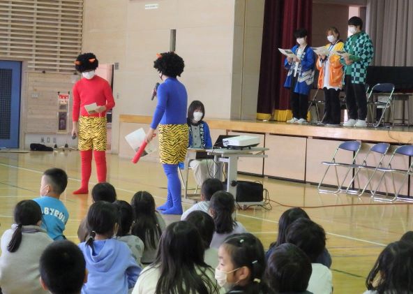 2022年11月16日(水) PTA人権講演会11月16日にPTA人権講演会がありました。長野大学の片岡通有先生とゼミの皆さんによる「泣いた赤おに」の朗読劇、それに続くワークショップが行われました。子どもたちからは、たくさんの意見が出ました。 |
