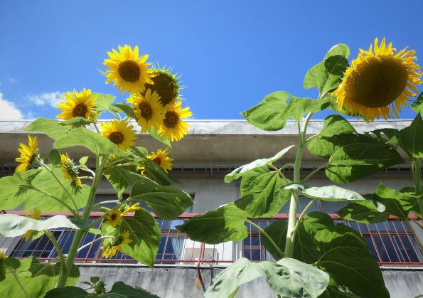 8月18日 中庭のひまわりが太陽の光を浴びています