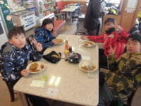 2025年1月24日(金) スキー教室(3~6年)3~6年生が、スキー教室に行ってきました。初心者から上級者までがそれぞれのコースに分かれ、それぞれのコーチについて一日スキーを楽しみました。最初は立つことにも苦労していた初級の子たちも、リフトに乗って上まで上がり、滑っておりて来ることがきました。お昼のカレーは小盛り、中盛り、大盛りをそれぞれに選ぶことができ、おいしくいただきました。