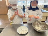 2025年3月12日(水) がんばったね会(2年)「がんばったね会」ということで、自分たちで作った大豆を使って、きなこだんごづくりをしました。大豆をきなこにするのにも一苦労で、売っているきなこのような細かさにはなりませんでしたが、自分たちで作ったきなこだんごは特別な味がしたようでした。 |