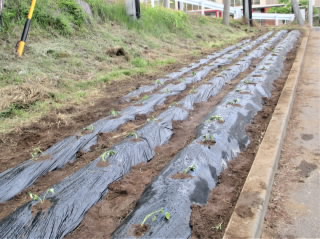 今年も校内の畑に給食委員会でサツマイモの苗を植えました。