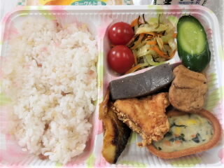 本日は、「お花見給食」の日でした。満開の桜の木の下で、お弁当をいただきました。