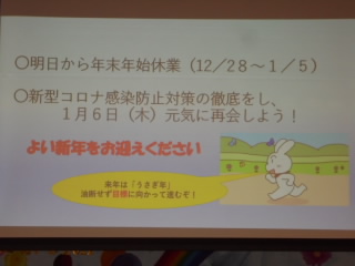 そして、3学期や新年の目標を決めたら、それを忘れずにカメのようにコツコツとした努力をして成果をあげようと話されました。