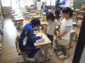 みんな、塩田西小の卒業生で「なつかしい~」と言いながら、初日は1年生から4年生のクラスに入って先生の仕事の手伝いをしてくれました。