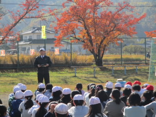 11月13日、避難訓練を行いました。児童はすばやく避難することが出来ました。消防署の方々にも来ていただき、消火活動の様子も見せていただきました。