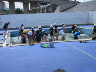6月13日(木)には、5,6年生が大プールの清掃を行いました。今年も事故やけがなくプール学習をすすめていきたいです。