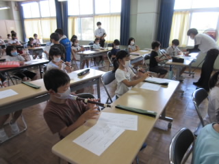 マスクをしたままリコーダーが吹けるふき口を、音楽の千野先生が考えて作りました。3年生がとても楽しみにしていたリコーダーの学習を始めることができました。