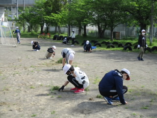 2022年5月11日(水) 全校で草取りと石拾いを行いました