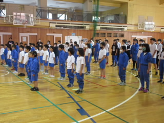 朝の時間、健康給食委員による集会が体育館で行われました。今回は「お尻鬼ごっこ」です。お尻で逃げる、とっても簡単な鬼ごっこ。でも大変・・・!子どもたちはとてもいい笑顔で楽しんでいました。