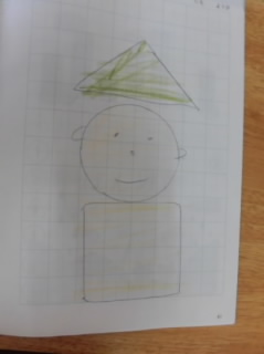 好きな形をうつしとって、絵をかいてみました。ずれないように押さえながら書くのは結構難しい・・・でも楽しんでやっていました。