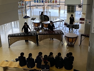 放課後にエントランスホールで、吹奏楽部によるスプリング☆コンサートvol.1が行われました。