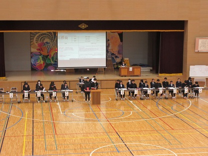 今まで二中生徒会をリードしてきた生徒会役員による生徒総会のリハーサルが放課後に行われました。1年間を振り返って感じている成果や課題を全校生徒で共有し、次につなげる大切な生徒総会。リハーサルにも熱が入っていました。