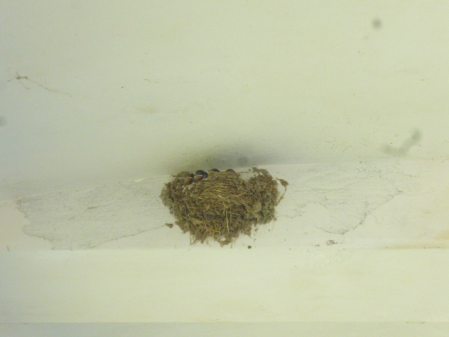 本校の体育館へ向かう外廊下の天井に、毎年ツバメが巣を作ります。