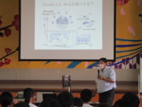 高校の先生方のお話をお聞きして、実際に出前授業を体験し、本校卒業生の各校の先輩のお話を聞くことで、高校の具体的な内容や生活をつかみ、進路に目当てをもてるように企画しています。