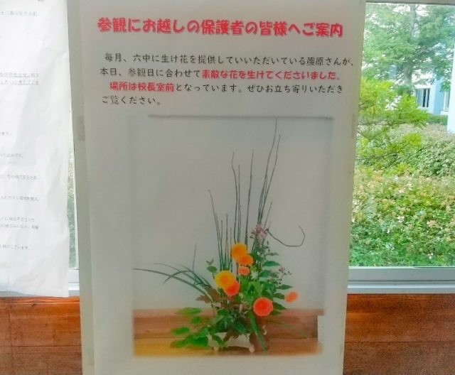10月12日の授業参観日に合わせ、腰原さんが素敵な花を生けてくださいました。