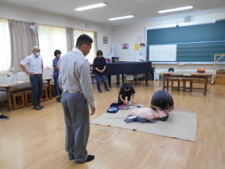 2024年6月14日(金) 救命救急法の講習会来週から水泳学習が始まるので、その前に消防署より講師の方に来ていただき、職員が救命救急法の講習を受けました。「もし実際に起こったら」をイメージしながら真剣に学びました。救命には「まずは自分の体調を管理すること」と指導を受けました。安全に水泳学習を終えられるよう、体調チェックから注意していきたいと思います。
